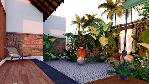 Tropical design in Kerala lowers interior temperatures by 2–3°C through natural ventilation and shading.